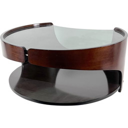 Runder Couchtisch aus Holz und Rauchglas, Mid Century, Italien 1970er