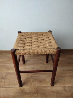 Hocker aus den 70er Jahren, dänisches Webmuster aus Sisalholz, Vintage