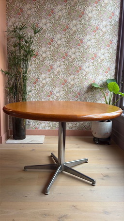 Runder Teak-Esstisch im Vintage-Stil der 60er-70er Jahre