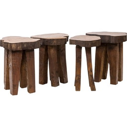 Satz von 4 Hockern aus Ulmenholz, 1970