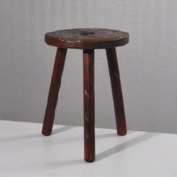 Vintage französischer brutalistischer Dreibeinhocker aus Massivholz, ca. 1960
