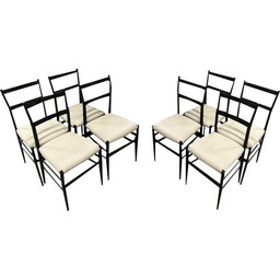 Satz von 6 Stühlen aus schwarz lackiertem Holz, Italien 1950