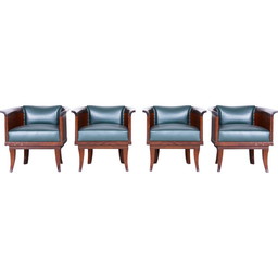 Satz von 4 Sesseln aus Eiche und Leder, Tschechoslowakei 1920