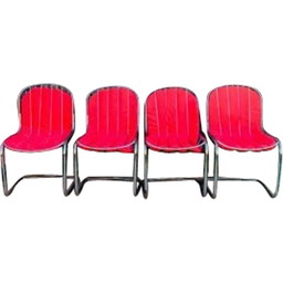 Satz von 4 Metallstühlen mit Kissen, Italien 1970