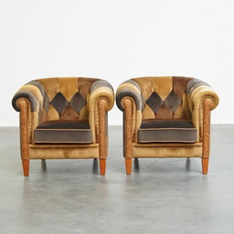 2 X Chesterfield-Sessel aus Stoff