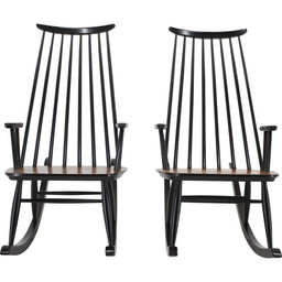 Paar alte Varjosen Puunjalostus-Schaukelstühle aus Buchenholz, Finnland 1960er Jahre