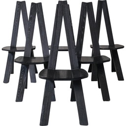 Satz von 6 schwarzen französischen Esszimmerstühlen von Pierre Chapo, 1970er Jahre
