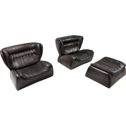 Dunkelbraune Sessel und Hocker "Pasha" von Durlet 1970