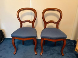 Twee Biedermeier stoelen met blauwe bekledingTwee Biedermeier stoelen met blauwe bekleding
