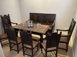 Engelse kasteelbank met eethoek en fauteuilsEngelse kasteelbank met eethoek en fauteuils