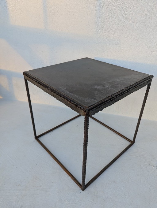 Industrieller Couchtisch aus massivem Sheesham-Holz und Stahl