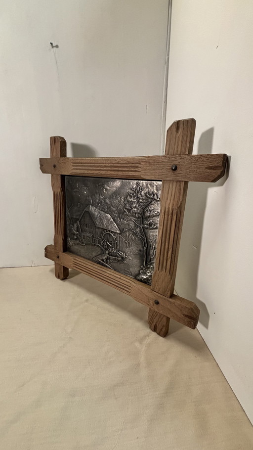 Dekorative, versilberte Schale mit detaillierter Reliefdarstellung.