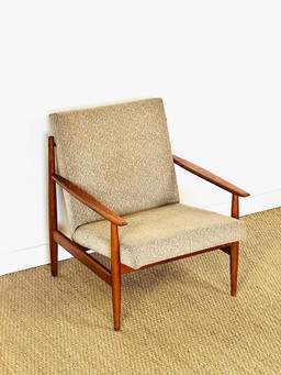 Vintage skandinavischer Sessel aus Teakholz und beigefarbenem Strukturstoff, 1960