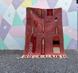 Handgeknüpfter, cremefarbener Teppich mit geometrischen Mustern, 250 cm x 150 cm