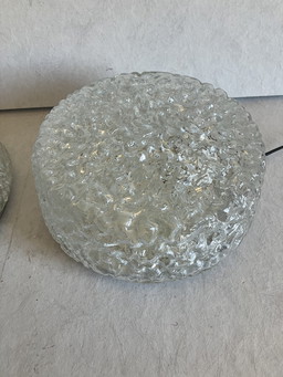 Schöne Mid Century Deckenleuchte Plafoniere Flush Mount Geätztes Glas Floral Dekor Metall 1970er