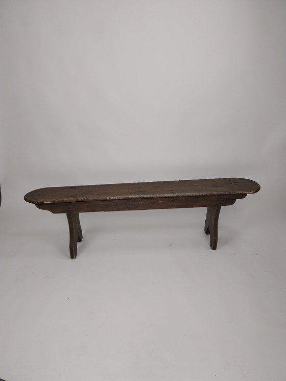 Dies ist eine authentische brutalistische Bank aus dem Jahr 1900, die aus Massivholz gefertigt ist. Sie hat einen robusten und schlichten Look, der perfekt in minimalistische oder industrielle Interieurs passt. Die Bank ist robust und funktional, ideal für den Flur oder als dekoratives Element im Wohnzimmer. 160 x 26 x 45cm