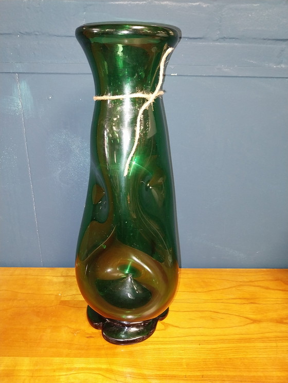Diese schöne gekniffene Vase, die von Winslow Anderson für Blenko entworfen wurde, ist ein atemberaubendes Beispiel für modernes Mid Century Design. 1970er Jahre Hergestellt aus grünem Glas, strahlt sie zeitlose Eleganz aus. Perfekt für die Präsentation von Blumen oder als alleinstehendes Dekorationsstück. 46cm hoch 16cm Durchmesser Versand ist auf eigene Gefahr möglich. Abholung wird bevorzugt.