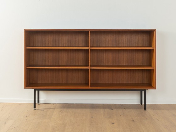 Klassisches Sideboard aus den 1960er Jahren. Korpus in Teakholzfurnier mit vier Einlegeböden und neuen Vierkantstahlfüßen in Schwarz. Die Platte ist mit blauem Formica beschichtet. Sehr gute Verarbeitung, hochwertige Materialien, Korpus mit Massivholzkanten. Made in Germany, Hersteller: WK Möbel.
