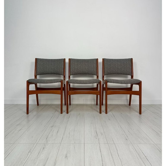 Vintage Esszimmerstuhl Modell 89 von Erik Buch für Anderstrup Møbelfabrik. Original aus den 1960er Jahren, dänisches Design. Massives Teakholzgestell mit grauem Bezug. Sehr guter Zustand mit altersbedingten Gebrauchsspuren. NUR NOCH EIN STUHL VERFÜGBAR!