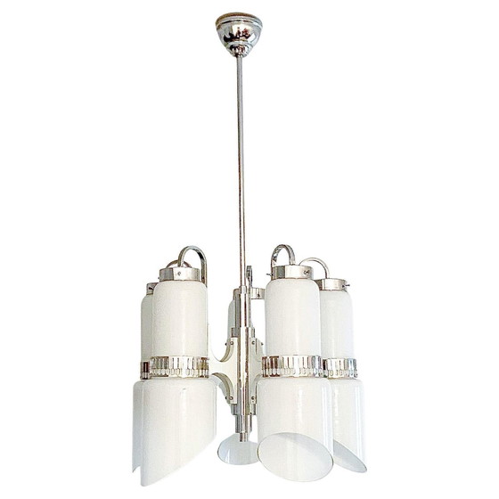 Modernistischer Kronleuchter aus Muranoglas und Stahl aus der Raumfahrt - Vistosi, Italien, 1960er Jahre