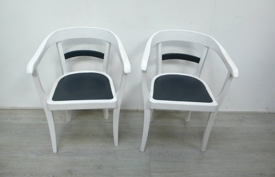 2 Armlehnstühle German Bauhaus Ära Gropius Stil, Weiß + Nachtgrau 1920er