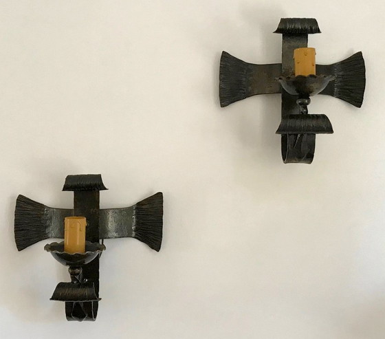 2 brutalistische Wandleuchten aus Schmiedeeisen 70er Jahre