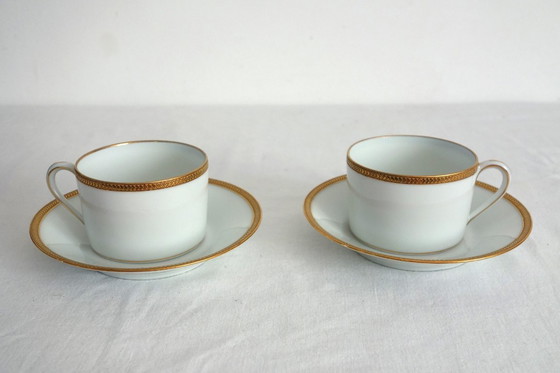 Set aus 2 Tassen und Untertassen aus Porzellan, signiert CH. Field Haviland, Mitte des 20. Jahrhunderts.