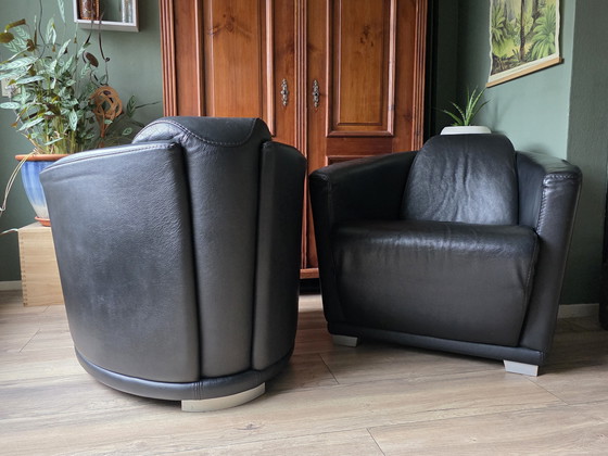 Nur als komplettes Set erhältlich. Zwei wunderschöne schwarze Ledersessel von Enzo Luca in sehr gutem Zustand.