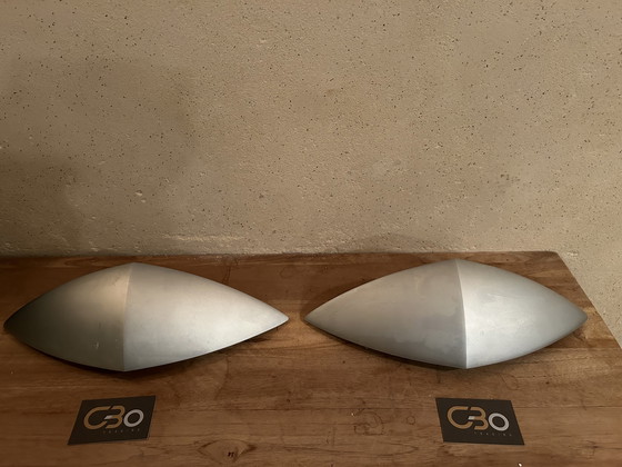 For sale is a **pair of authentic Tobias Grau "Artur" wall lamps** in elegant satin aluminum finish. These discontinued German-made lights show only minimal signs of their age, making them perfect for design-conscious buyers looking for characterful vintage pieces.