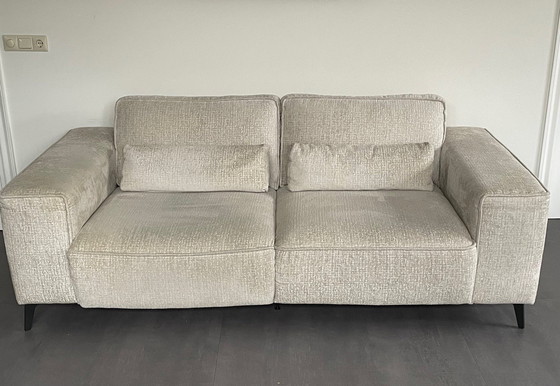 Ein Domanto 2,5-Sitzer-Sofa, einschließlich 2 Lendenkissen (70 cm breit) und einem separaten (beweglichen) Nackenkissen aus demselben Stoff. Der Fusion-Stoff (klnr 196 SHELL) ist ein schwerer und robuster Qualitätspolsterstoff mit einem leichten 3D-Effekt. Der Stoff hat ein voluminöses und luxuriöses Aussehen und fühlt sich weich an. Das 1,5-sitzige Element auf der linken Seite, wenn man vor dem Sofa steht, hat eine elektrische Liegefunktion. Angenehm und bequem zu bedienen. Zusätzliche Informationen Abmessungen Sofa: - schwarze Beine 13cm hoch, - Höhe des Sofas inklusive beweglichem Nackenkissen von 25cm ist 105cm - Sitztiefe 70cm (ohne Lendenkissen) - elektrisch ausziehbares Teil ist 35cm - Armlehnen sind 30cm breit Das Sofa ist ab Oktober 2022 (Möbelhaus).