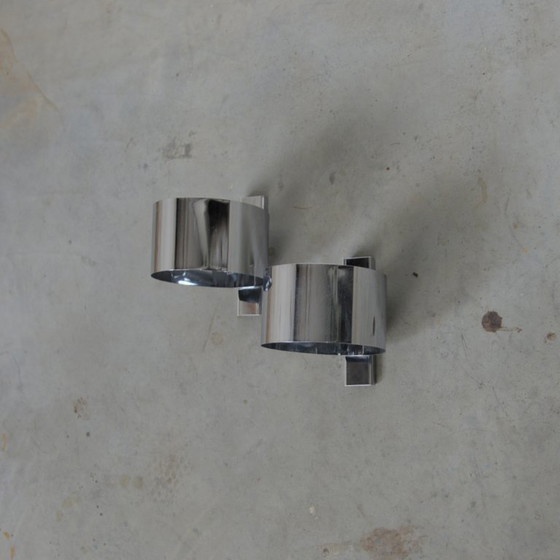 Set aus zwei eleganten Ribon-Wandleuchten in Chrom. Diese Leuchten bieten ein modernes Design und passen perfekt in jedes Interieur. Dank der originalen EU-Verkabelung ohne Erdung sind sie sofort einsatzbereit. Maße: 17 x 14 x 12 cm.