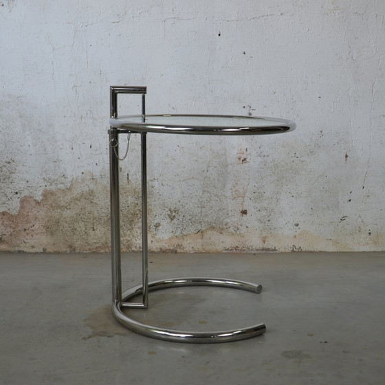Der Beistelltisch E1027 von Eileen Gray, hergestellt von ClassiCon, ist ein ikonisches Stück des modernen Designs. Diese Edition aus dem Jahr 1980 besticht durch die zeitlose Kombination aus Glas und Chrom und passt perfekt in ein elegantes und stilvolles Interieur. Mit einem Durchmesser von 50 cm und einer Höhe von 63 cm ist dieser Tisch gleichermaßen funktional und elegant. Ein Must-have für Liebhaber modernen Designs.