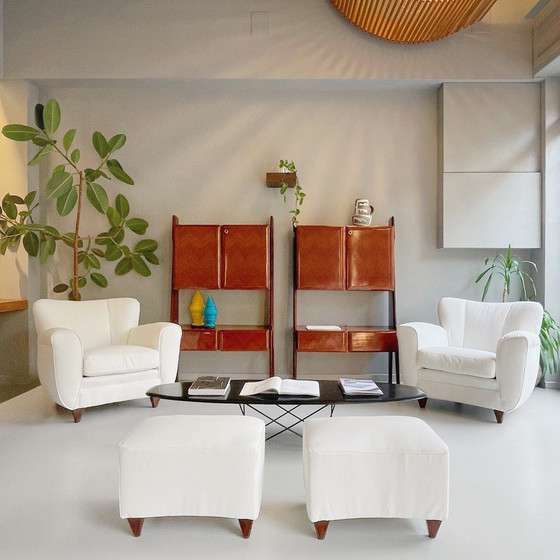 2x italienische Sessel mit Fußhockern - Italien, um 1940