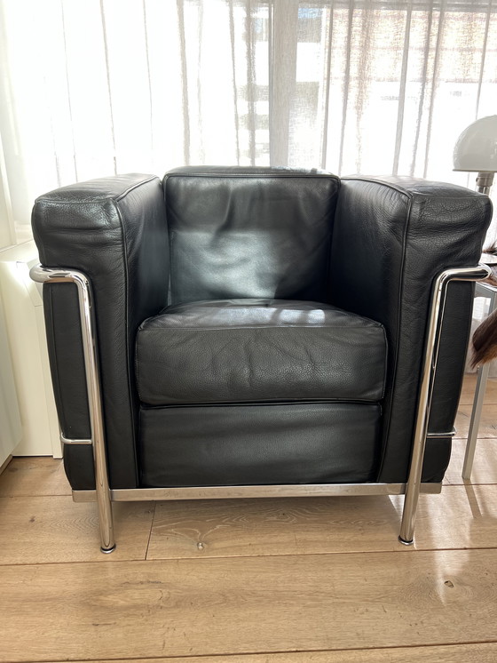 Werten Sie Ihr Wohnzimmer mit den legendären LC2-Sesseln von Le Corbusier auf. Gefertigt aus luxuriösem schwarzem Leder mit einem eleganten Chromgestell, verkörpern diese Sessel die Essenz des Mid-Century-Modern-Designs. Sie verleihen jedem Raum einen Hauch von Eleganz und bieten Komfort und Stil zugleich.
