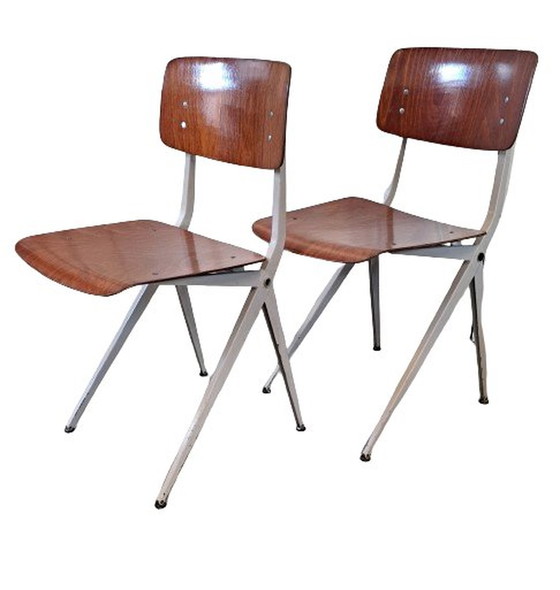 Diese Stühle sind ein Entwurf von Ynske Kooistra und Mark Siepel. Die Beine erinnern an einen Kompass. Sehr bequemes Sitzen. Datierung 50er, 60er Jahre. Mehrere Stühle auf Lager.
