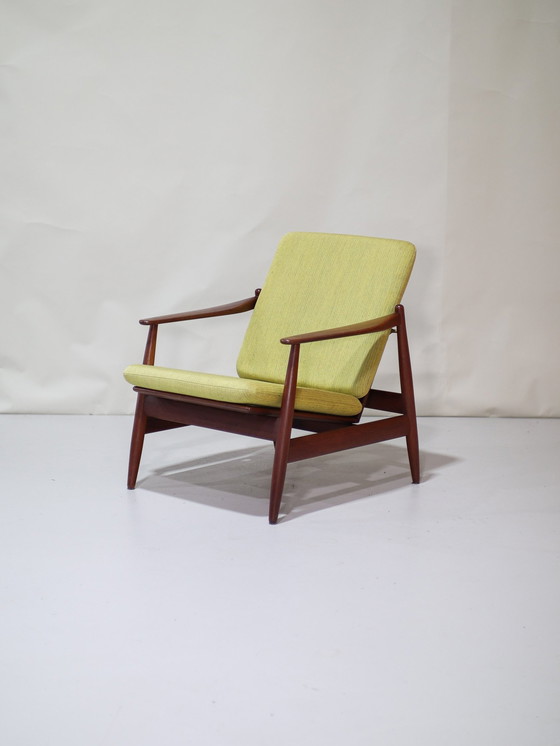 Seltener Sessel (Modell 340), entworfen von Poul M. Volther für Frem Røjle in Dänemark, 1960er Jahre. Das Gestell dieses Vintage-Sessels ist aus Teakholz gefertigt und hat ein schönes Design mit raffinierten Details und Messingakzenten. Die frische lindgrüne Polsterung ist vermutlich original. An den Armlehnen befindet sich eine schöne Holzverbindung. Dieser Sessel strahlt dänische Handwerkskunst aus! Gezeichnet und in sehr gutem Zustand. Das Gummiband im Sitz ist erneuert worden. L65xT75xH77cm | Sitzhöhe 41cm Es sind 2 Stück auf Lager, der Preis ist pro Stück. Senden Sie eine Nachricht, wenn Sie an dem 2er-Set interessiert sind.