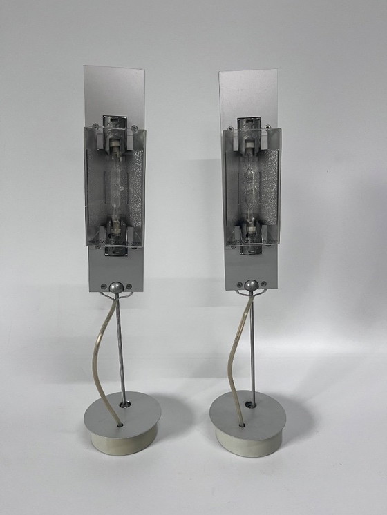 Dieses Paar Deckenleuchten "Wandering Finger Wall" von Ingo Maurer zeichnet sich durch ein schlichtes, minimalistisches Design aus. Gefertigt aus hochwertigem Metall mit einem silbernen und grauen Finish, sind diese modernen Wandleuchten perfekt, um jedem Raum einen zeitgenössischen Touch zu verleihen. Sie behalten ihre Ästhetik und Funktionalität und sind ideal für alle, die ihren Raum mit einem Hauch moderner Eleganz aufwerten möchten. Beachten Sie, dass eine der Glühbirnen ausgetauscht werden muss, was problemlos möglich ist.