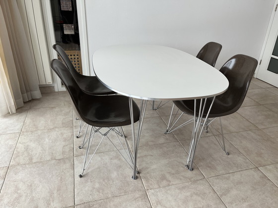 4 Eames Sideshells und elliptischer Tisch von Hein und Matthson