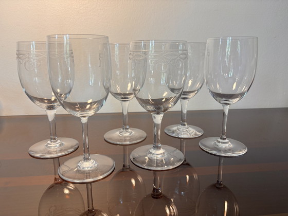 Ideal für Wasser oder eine moderne Weinprobe. 4 Gläser sind signiert, die anderen 2 gehören zum Modell "Byzantin" von Baccarat, das vor 1936 hergestellt wurde und daher nicht signiert ist.