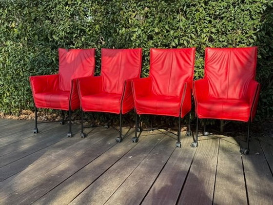Gepflegte, ferrarirote, restaurierte Montis Chaplin Stühle