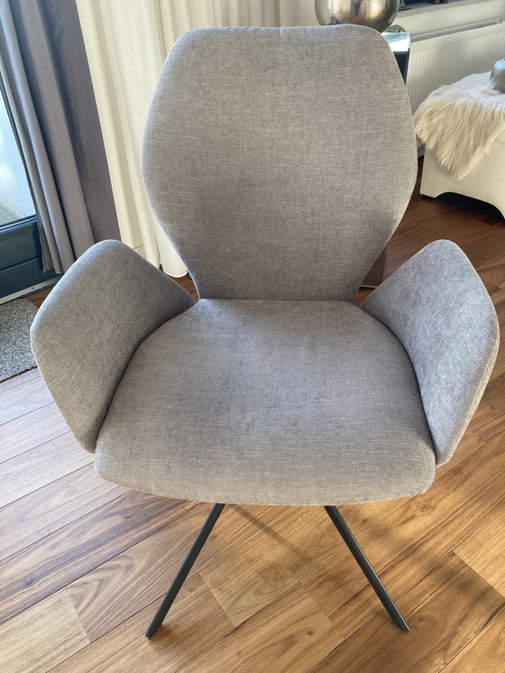 4 X OS Stühle Modell Hera, Spin Bein 360gr.drehbar retum Funktion Stoff fein gewebt hellgrau.Basis schwarz.