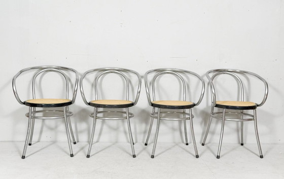 4er Set Stühle/Esszimmerstühle, Deutschland, 90er Jahre, Konstruktion gefertigt aus Stahlrohr mit Kunststoffgeflecht,
