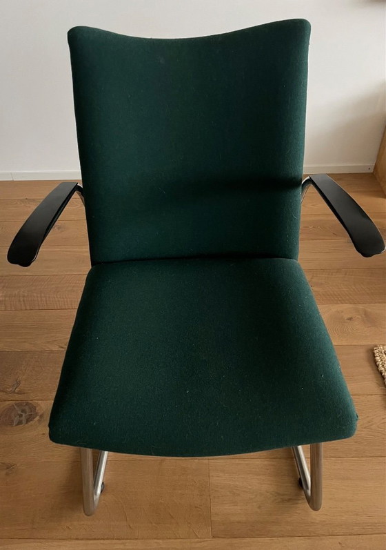 Vier Esszimmerstühle des Modells de Wit 3014, perfekt restauriert und mit dunkelgrüner Wolle bezogen. Die Stühle sind äußerst bequem und wurden nur selten benutzt, sodass sie wie neu aussehen.
