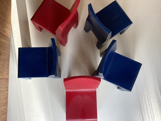 Zu verkaufen: Designer: Richard Hutton Hersteller: Gispen Stuhl: Central Museum Anzahl: 5 Stühle Farbe: rot und dunkelblau Material: Kunststoff Informationen: Der Gispen Central Museum Designstuhl wurde von Richard Hutten entworfen. Der Esszimmerstuhl hat eine königliche Geschichte. Denn, wie der Name schon sagt, wurde er für das Centraal Museum in Utrecht entworfen. Während der Segnung der Hochzeit von Prinz Willem Alexander und Prinzessin Maxima diente der einzigartige Stuhl als Sitzgelegenheit für die Gäste. Jetzt ist der Stuhl auch als Esszimmerstuhl erhältlich.