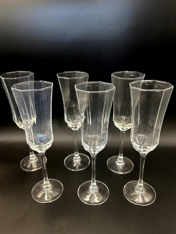 Diese Champagnergläser wurden in den 1980er Jahren in Frankreich von Luminarc hergestellt. Sie sind Teil der Octime-Serie. Sie sind in ausgezeichnetem Zustand.