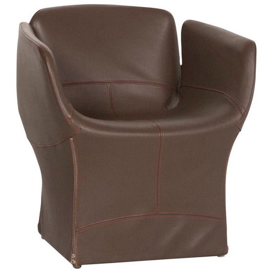 Der von Patricia Urquiola entworfene Moroso Bloomy Sessel in dunkelbraunem Leder ist ein skulpturales und einladendes Designobjekt, das Komfort und Eleganz mühelos vereint.