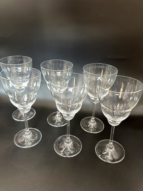 Satz von 6 Weingläsern mit gewellter organischer Form. Die Gläser sind mundgeblasen und befinden sich in einem ausgezeichneten Zustand. Hergestellt in den 60er/70er Jahren.