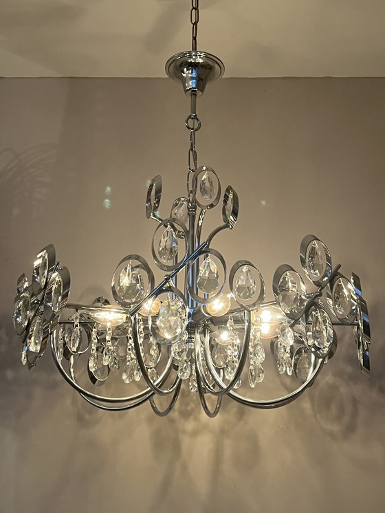 60'S Space Age Kronleuchter Chromrahmen Kristall Perfekter Zustand