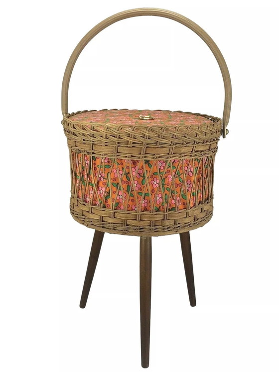 70er Jahre Nähkasten Nähkorb Utensilio Holzgeflecht Space Age Mid Century Design