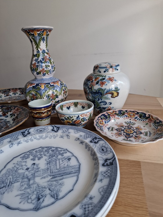 Dieses exquisite Porzellanset von Aardewerk zeichnet sich durch ein klassisches Design mit komplizierten mehrfarbigen Mustern aus. Das Set besteht aus verschiedenen Teilen, von denen jedes mit detaillierter Handwerkskunst und leuchtenden Farben aufwartet. Perfekt für Sammler oder als dekorative Ergänzung für jedes Zuhause, verkörpert dieses Set zeitlose Eleganz und Stil.